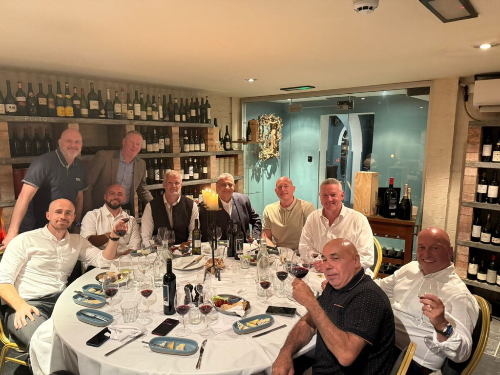 The meal, in the hotel’s stunning wine cellar, was funded by Dave Hawkins, owner of Damand Services, a heating and plumbing company in Walsall, after he placed the winning bid for dinner with Stimpson at the ‘Mud, Sweat & Cheers’ charity auction event at Moseley Rugby Club earlier this year.