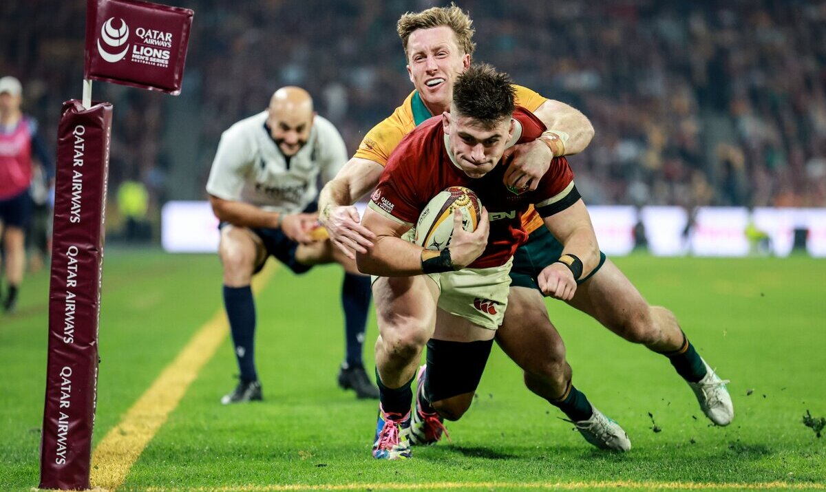 The Wallabies landed blows through Max Jorgensen, who brilliantly tore a landing high ball from Lions fullback Hugo Keenan. Carlo Tizzo crossed too, and debutant fly-half Tom Lynagh added a few with the boot.