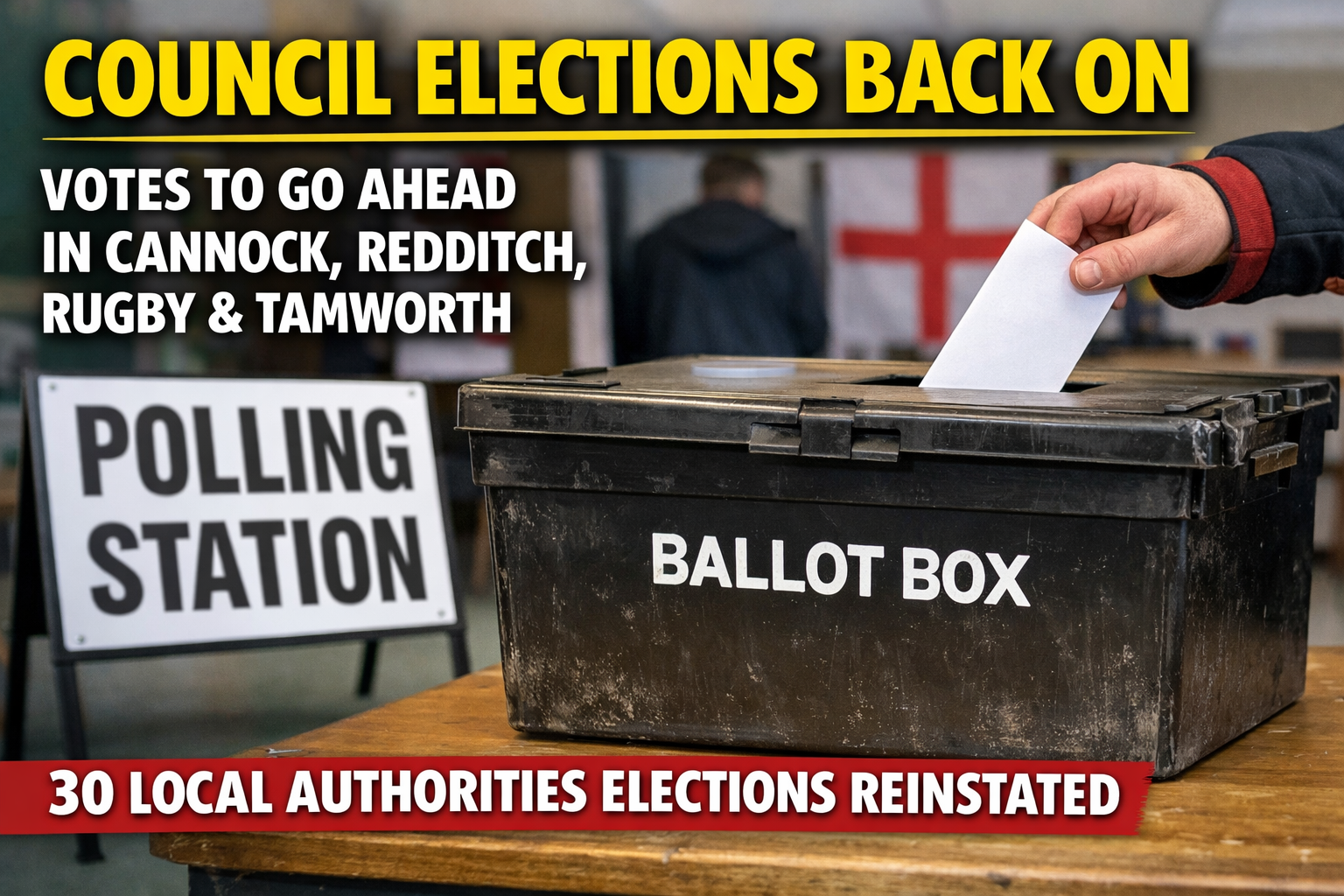 For voters in Cannock, Redditch, Rugby, Tamworth and across the wider Midlands, the message is clear. Local council elections will go ahead, and residents will have their say at the ballot box.